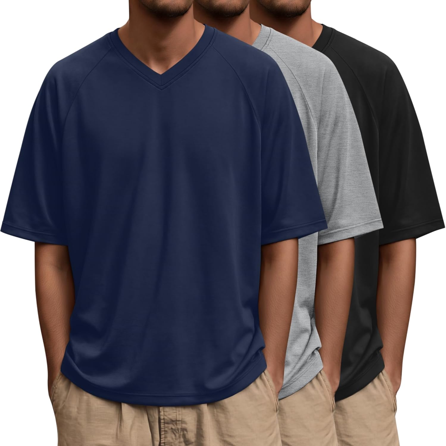 Features: The men's oversize shirts are practical and stylish. Please refer to the detailed size chart to choose the size that fits you for a comfortable and flattering fit. This v neck t shirt for men is easy to care for. It can be hand washed in cold water or machine washed on a gentle cycle, making them easy to maintain and care for. Specifications: Material: 55% Cotton, 39% Polyester, 6% Spandex Package includes: 3 x Men's oversize t shirts Notes: Manual measurement, please allow slight errors on size. The color may exist a slight difference due to different screen displays