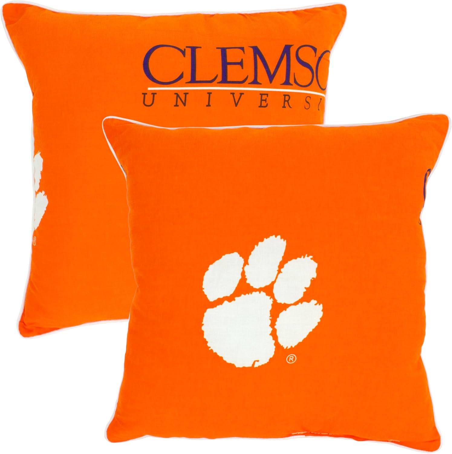 College Covers brand licensed 16 inch by 16 inch pillow. This dual sided rotary print pillow shows the same licensed logos and colors on both sides for a vibrantly colored, nice looking double sided pillow. Stuffed with a nice and fluffy poly fill, this is a great pillow not only to use as decoration in your fan zone, man cave or guest room, but to use to take a nap after a long day of tailgating and cheering on your favorite team. We recommend to spot clean or hand wash with a light detergent and allow to air dry. This contains 2 pillows. Officially licensed by Everything Comfy. Imported.