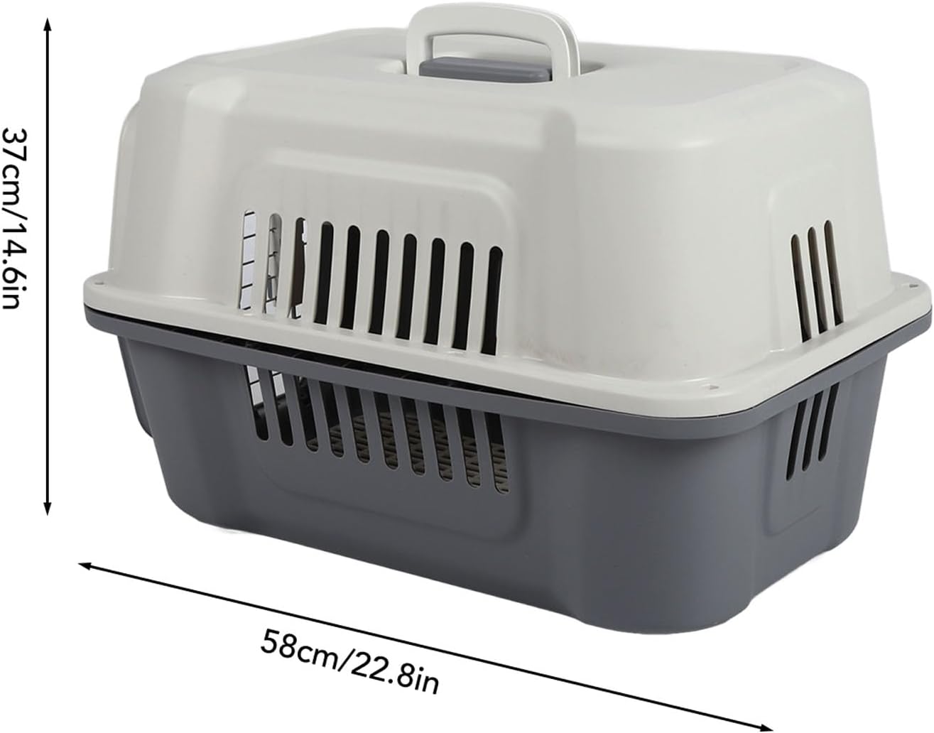 1. TRAVEL USE: These types of pet carriers are typically used for long distance travel such as air, , boat and bus travel. 2. PP MATERIAL: The cat cage is made of durable PP material to ensure it is long lasting and easy to clean. It is safe, , lightweight, portable and offers great strength and durability. 3. FOLDABLE HANDLE: The small animal cage includes a foldable top handle to save space and make it easier to carry the dog crate inside the airplane. 4. VENTILATED DESIGN: This dog cage is designed to be ventilated on all sides for maximum airflow to keep your pet comfortable and cool. 5. STURDY AND DURABLE: Hard enough to withstand heavy chewing and . The crate provides the best protection for your dog. Specification: Item Type: Hard Sided Pet Carrier Product Material: PP Product Color: Gray Product Specification: Iron Window, Large Size Product Size: Approx. 58x37x37cm / 22.8x14.6x14.6in Applicable Weight: Within 12.5kg/27.6lb Product Use: Large Capacity Portable Cat Cage Package List: 1 x Pet Carrier Cage (4 Pieces Total) 1 x Hex Wrench 8 x Screws 8 x Nuts Notice: All data are measured manually, and there are certain errors in the measurement results.