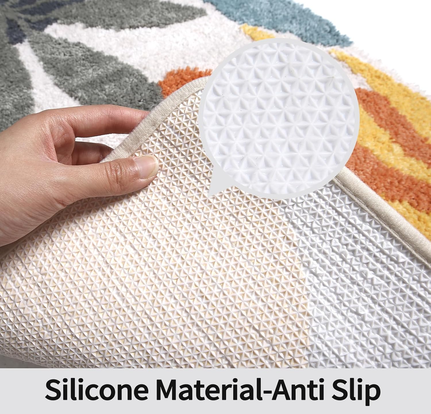 Non - Slip & Super Absorbent: This adorable bath rug uses an eco - friendly TPR backing material, which offers good non - skid performance that is both strong and long - lasting. To ensure the safety of you and your family, place the rug on a dry floor and make sure the backing is dry and clean. The dense and thick microfiber makes you feel like you're stepping on a cloud, soft and comfortable. Its great absorbency keeps your feet dry.