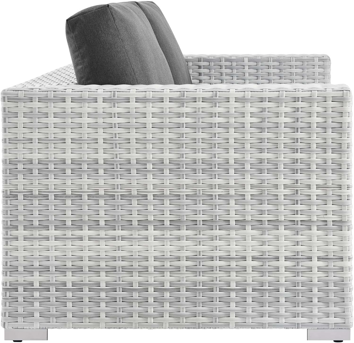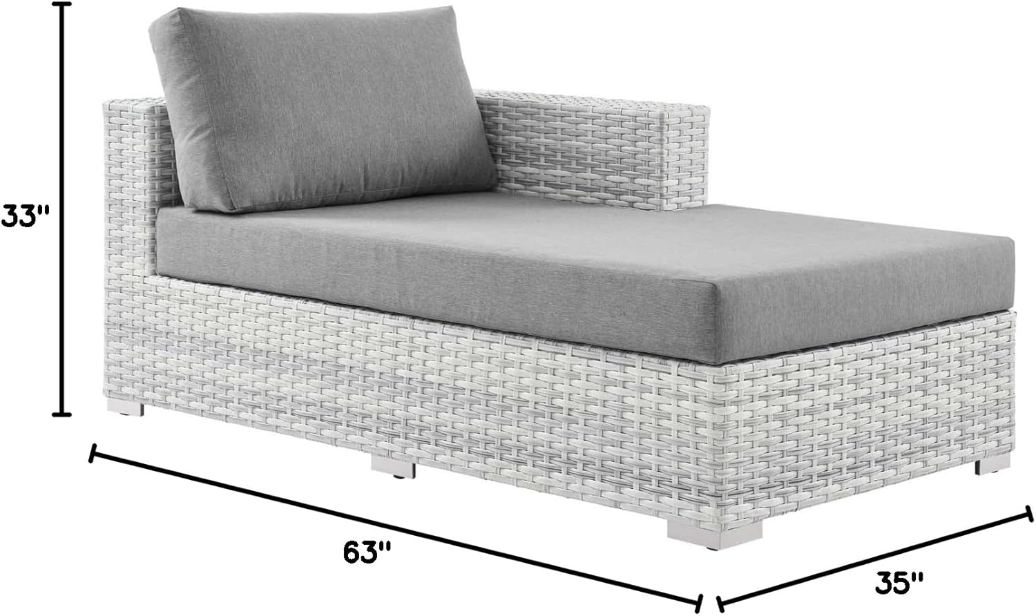 Gather stages of sensitivity with the Convene Outdoor Sectional series. Made with a synthetic rattan weave and a powder-coated aluminum frame, Convene is a versatile patio armless chair from an outdoor collection that shifts and combines according to the spontaneous needs of the moment. Outfitted with all-weather fabric cushions, the Convene Armless Chair leaves a positive impression on friends and family while enhancing your patio, backyard, or poolside retreat with palpable distinction. Set Includes: One - Convene Armless Chair Product Dimensions: Overall Product Dimensions: 35"L x 28.5"W x 33"H Seat Dimensions: 22.5"L x 28.5"W x 17.5"H Armrest Height from Seat: 8"H Backrest Dimensions: 6"L x 28.5"W x 15.5"H Cushion Thichkness: 5"H