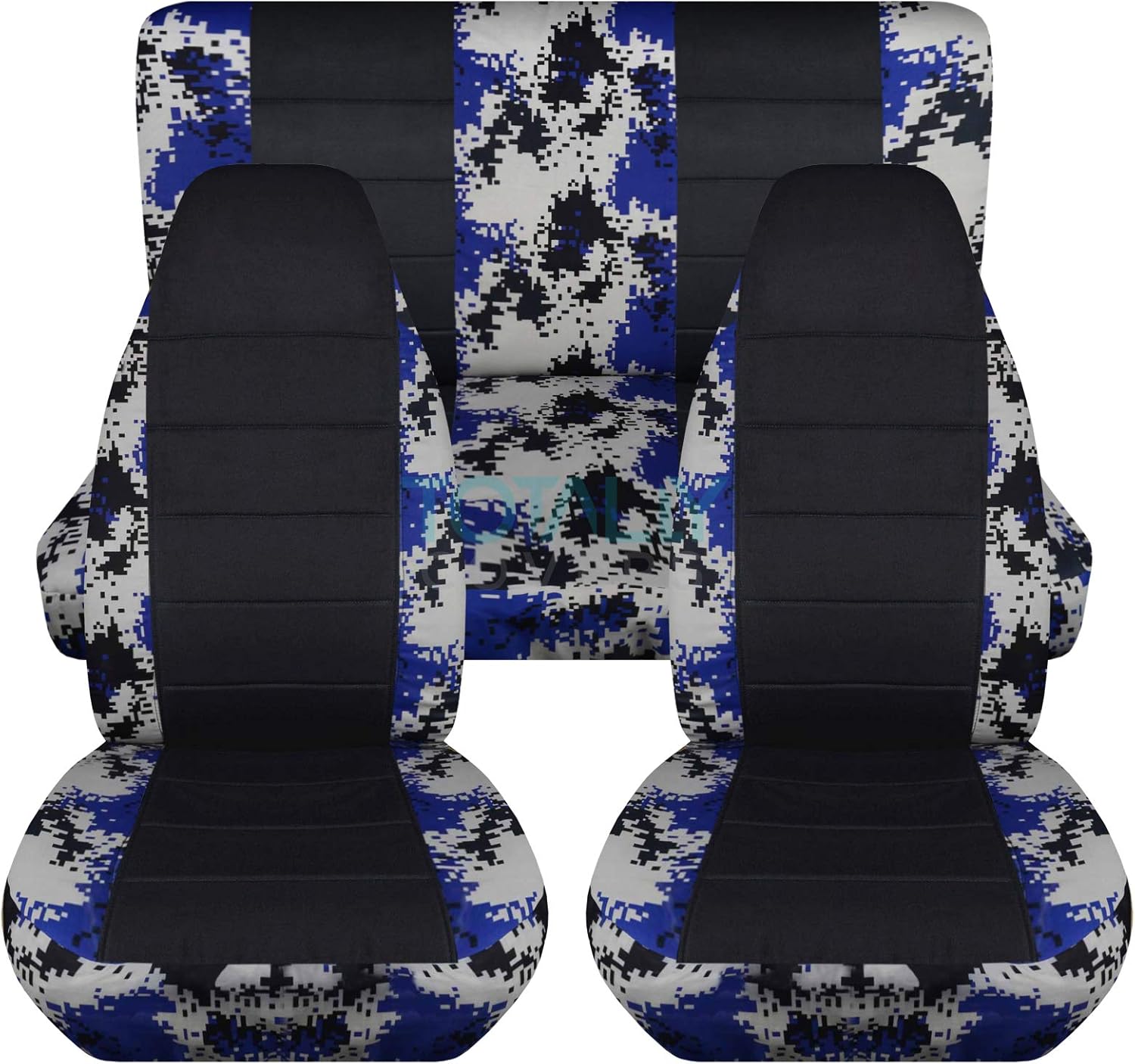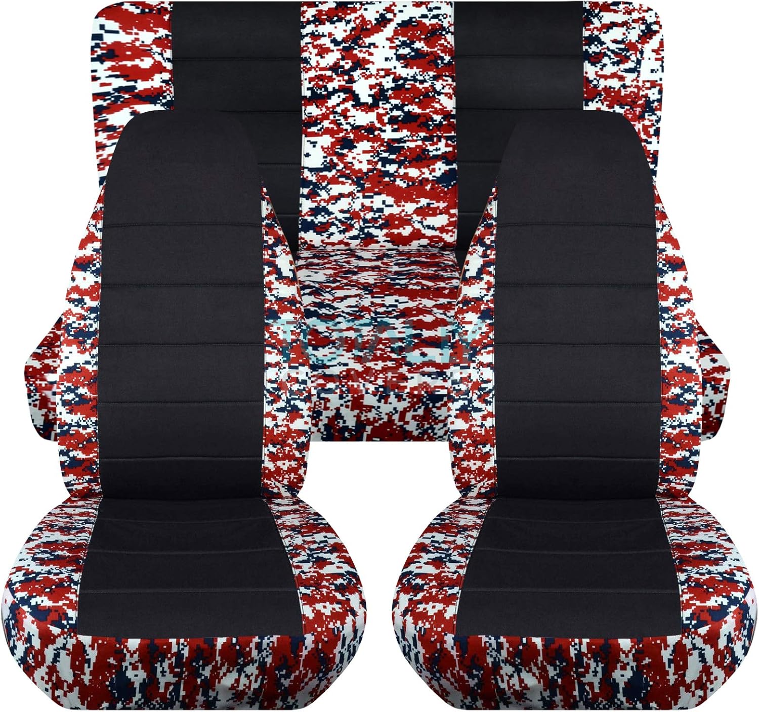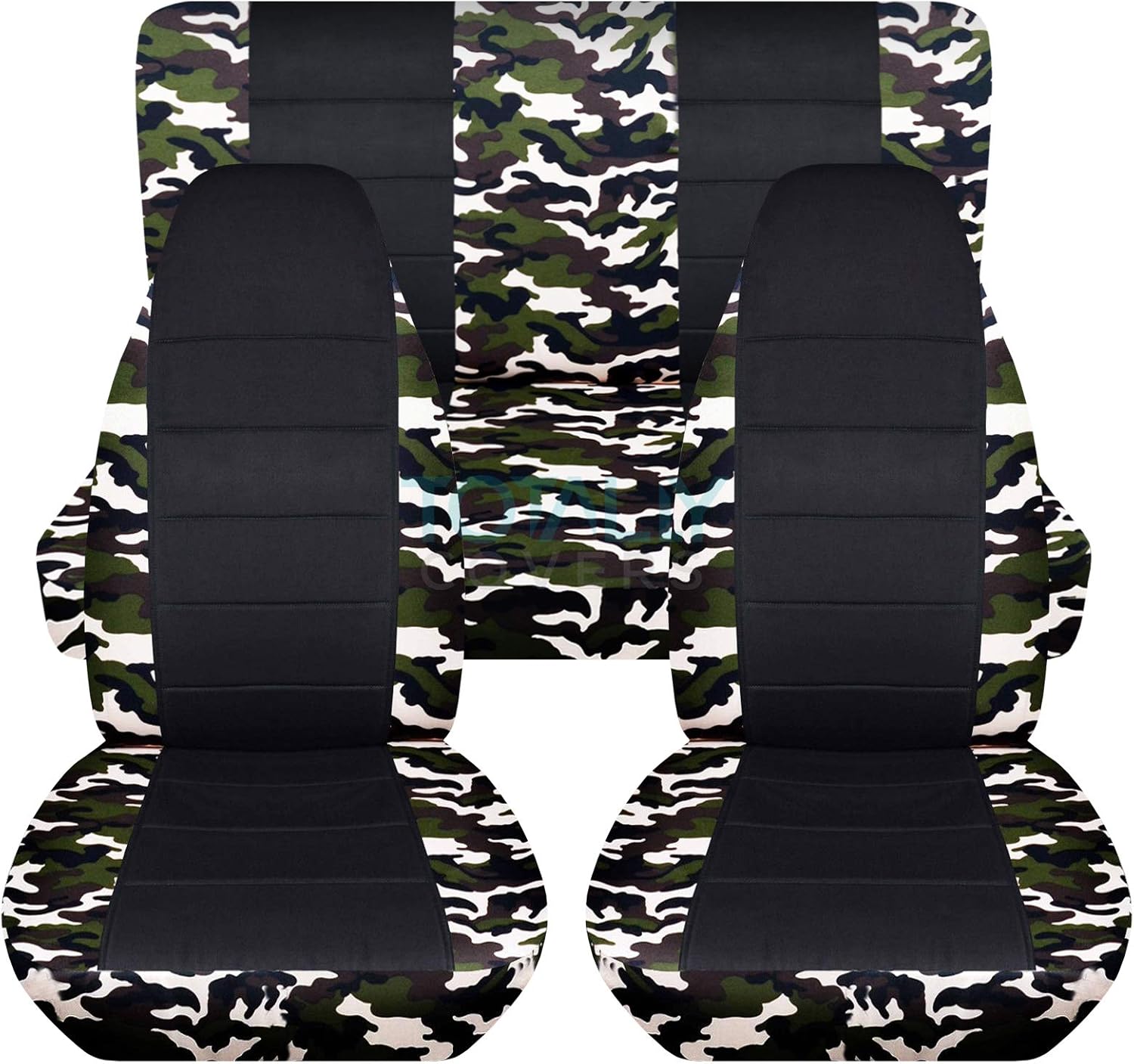 A full set of front and rear, green digital camo and black seat covers for cars, trucks, vans, RV or SUV. Be sure to visit our storefront ("Totally Covers") where you can find the largest selection of seat covers, to satisfy even the most demanding of tastes. If you can't find what you are looking for, please contact us ("Totally Covers") We can make seat covers for ANY car, truck, van, RV or SUV in a variety of 145 colors and prints, and even add your name/text and logo/design on them!
